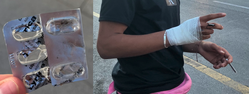 Ahmed (15, Tétouan) is one of them. Recruited into dealing at 12, he performs toughness to survive a city that pushed him onto the streets. Small for his age, he used to show his scars; now he asks for photos from “the other side”, the one without cuts. He says he stopped taking pills because they made him want to self-harm. “Now I only smoke weed,” he told us, proud of what feels like a safer choice.